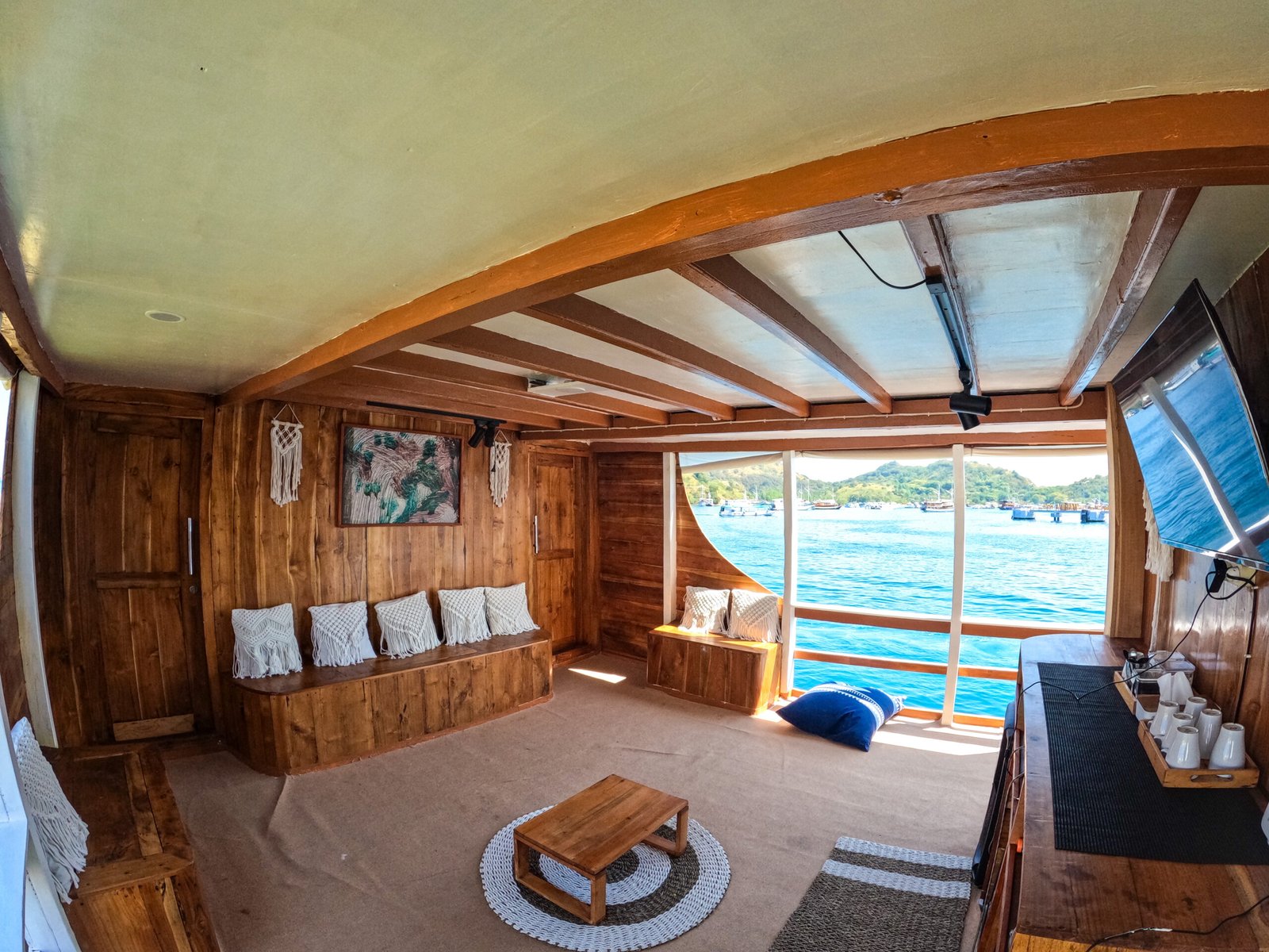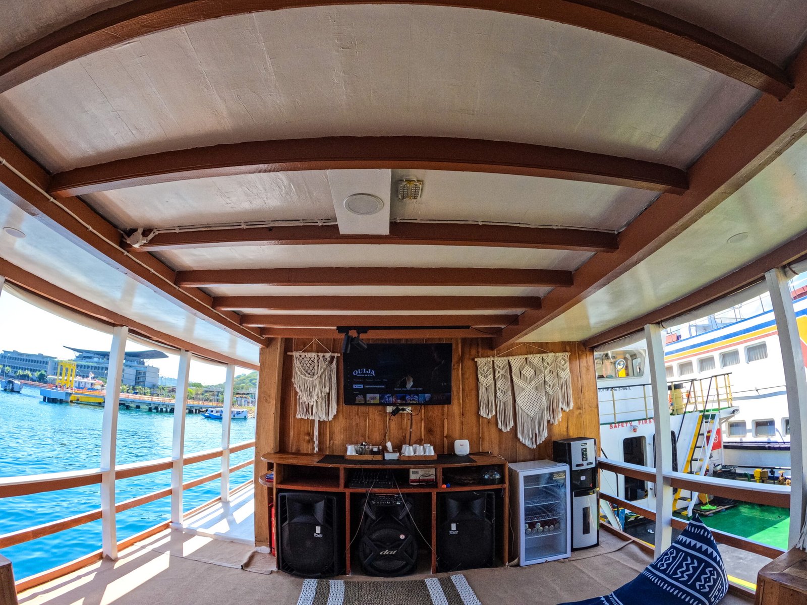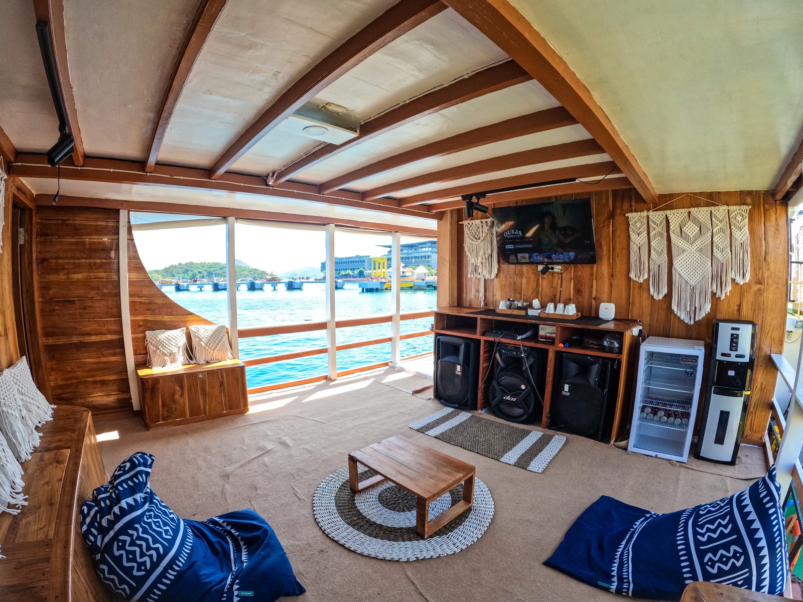 Public Shower Indoor Dining Room Paddle Board & Canoe Sundeck with Chilling Bed Lazy Chair Wifi on Board Karaoke TV LCD