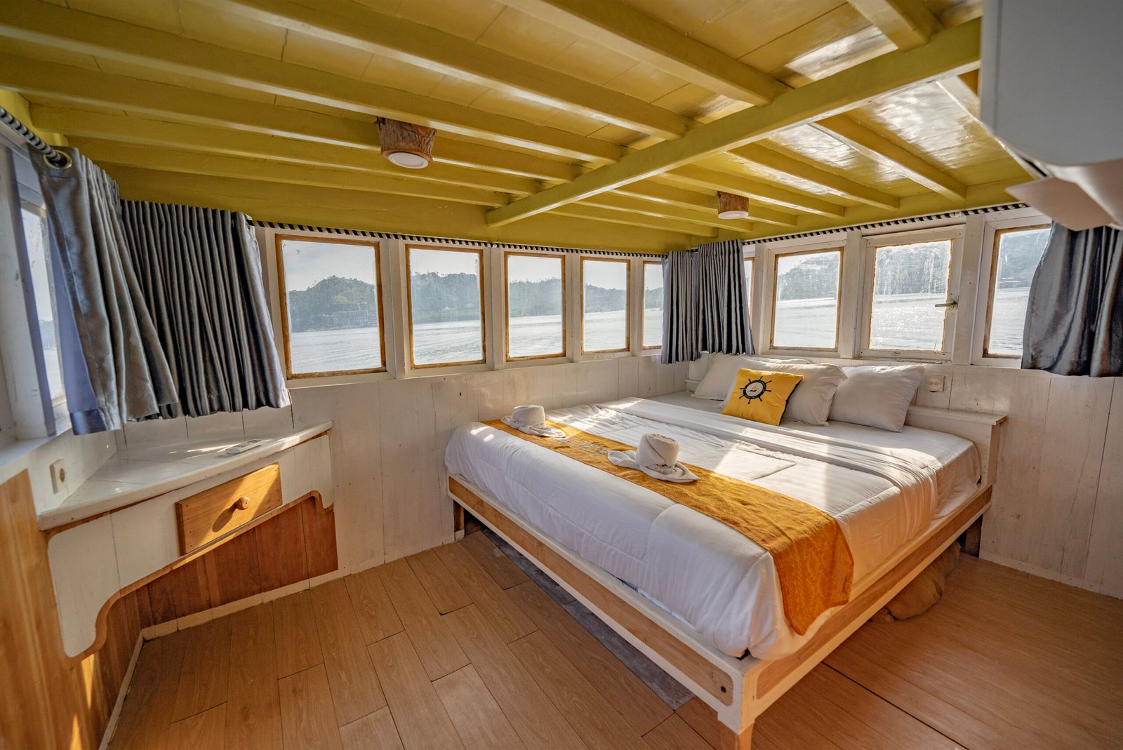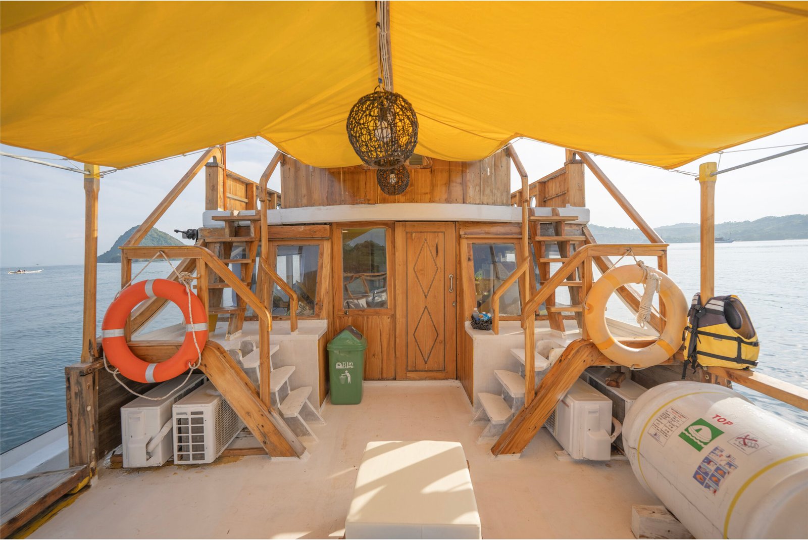 The NK Jaya 2 boat is a deluxe phinisi with 6 cabins, able to accommodate up to 13 people. It departs every Friday. Join us for an unforgettable adventure in Labuan Bajo, where you can enjoy stunning views and calm waters.